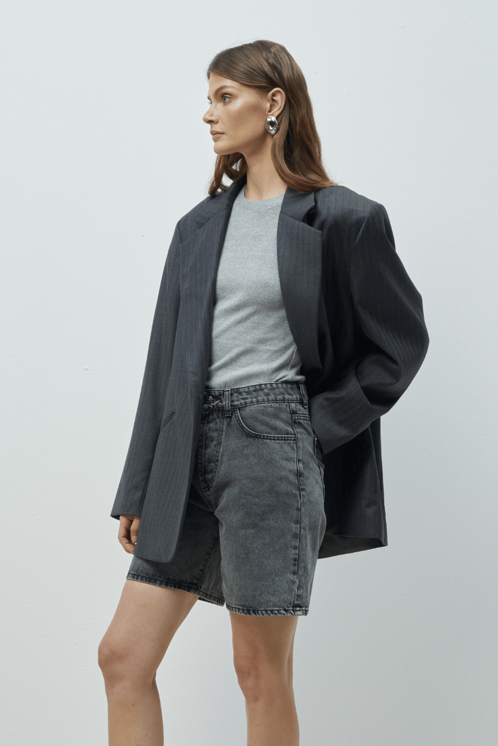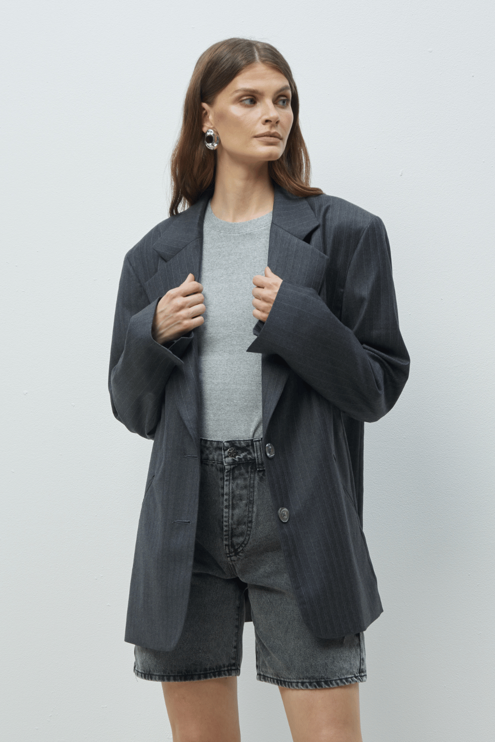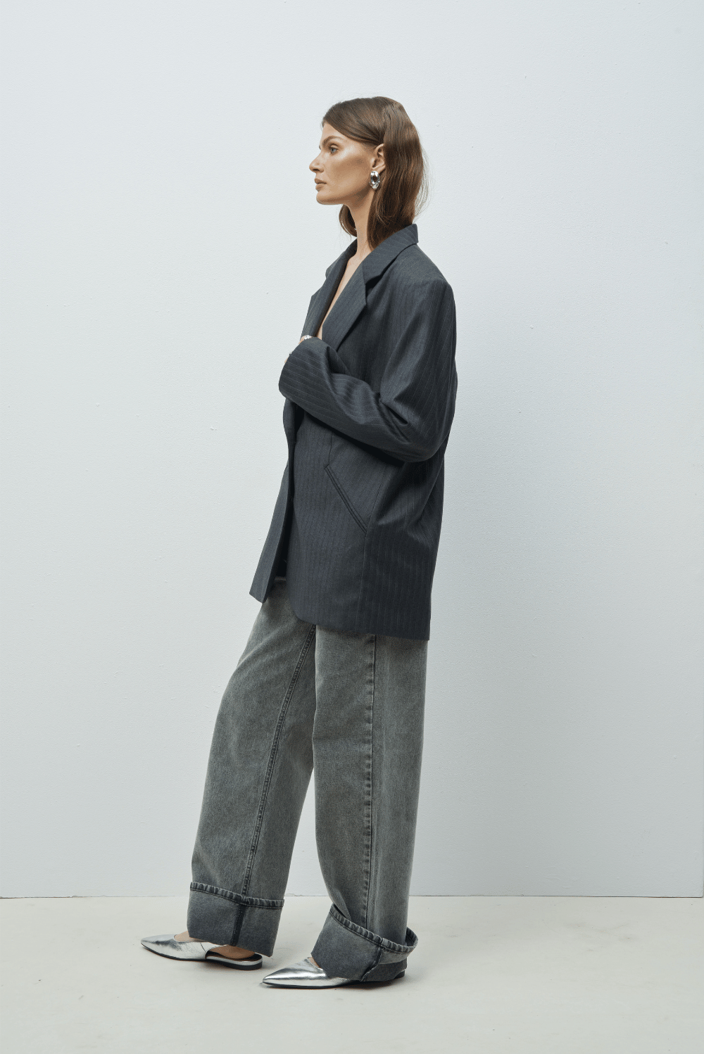 Marynarka MILAN to klasyk w nowoczesnym wydaniu. Oversizowy krój, który pasuje każdemu, włoska wełna, która nie ciąży i srebrzysty szary kolor z subtelnym połyskiem. Guziki z masy perłowej, rozcięte rękawy i ukośne kieszenie zewnętrzne – każdy detal gra tu swoją rolę. Nawet wewnętrzna, dyskretna kieszonka – na to, co najcenniejsze
